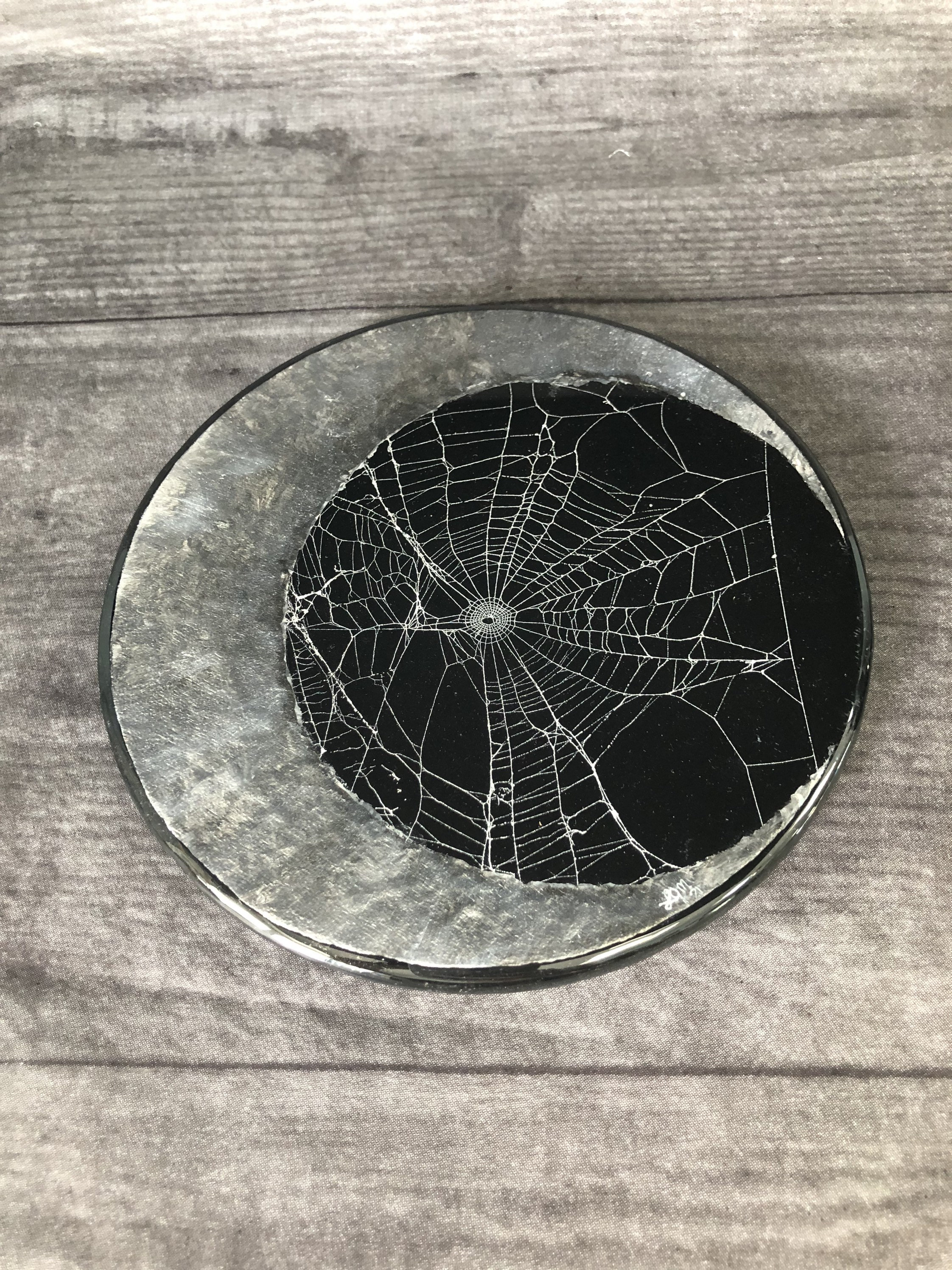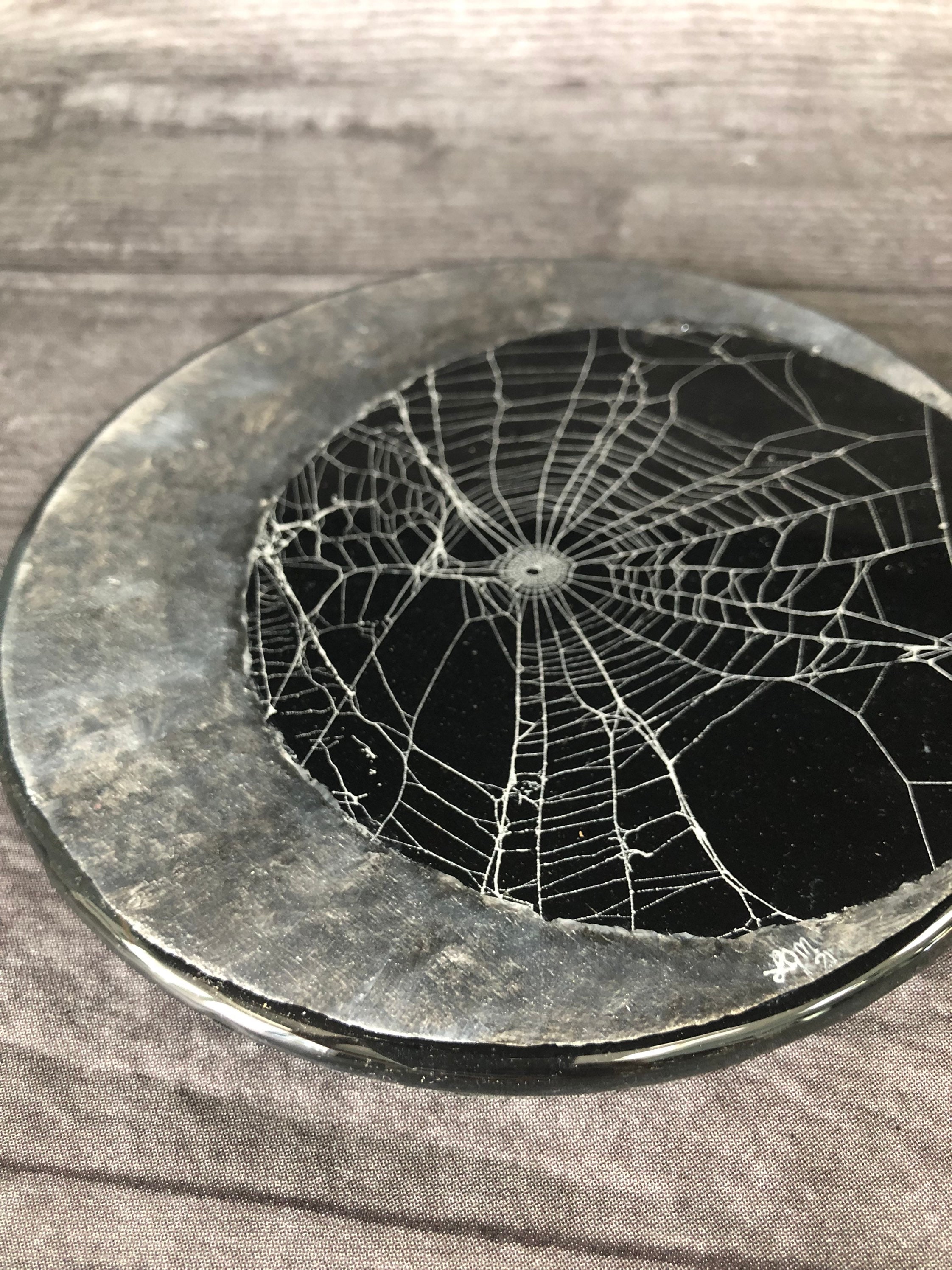 Hand Painted Crescent Moon and Preserved Spider Web.