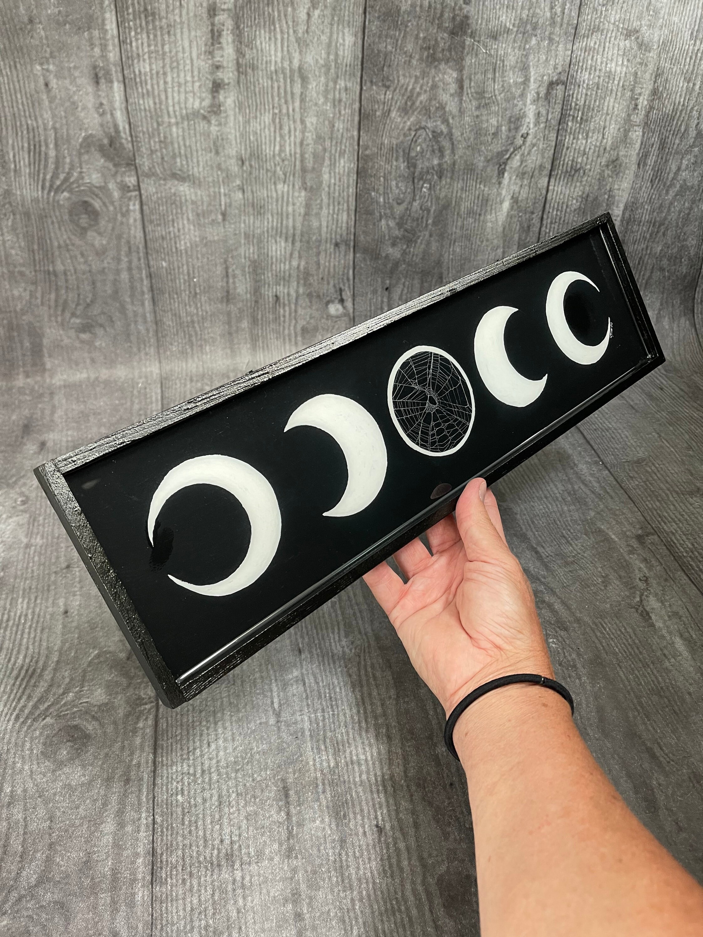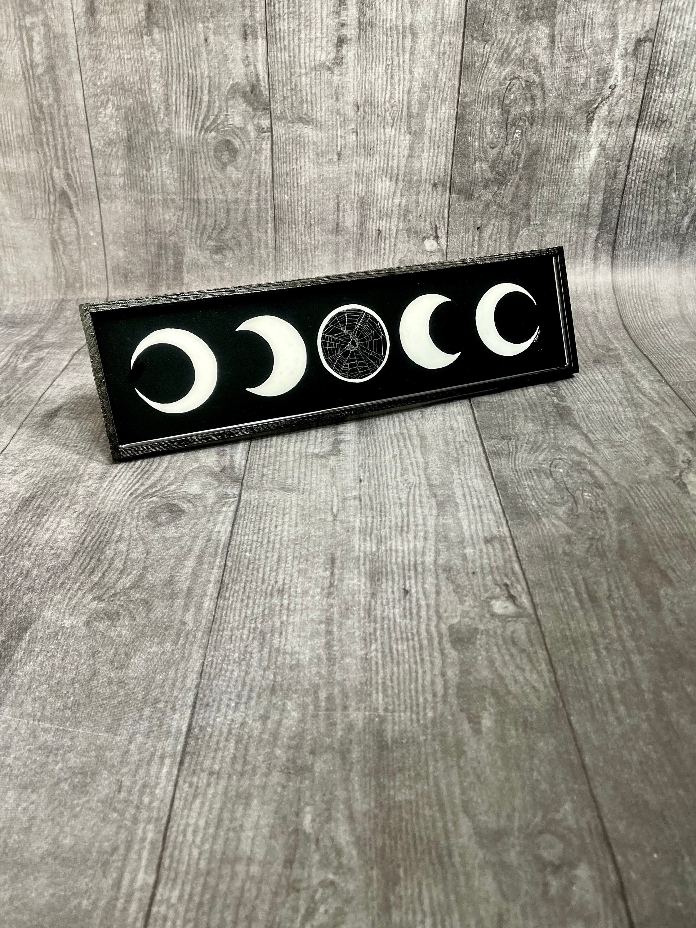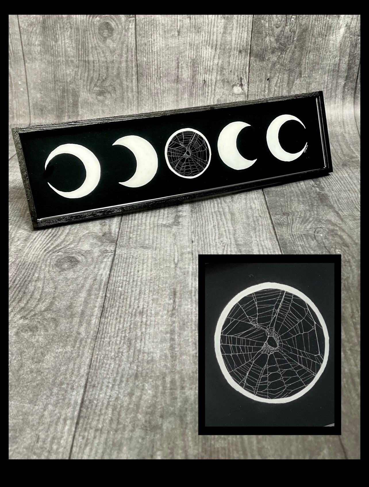 Moon Phases Plaque with Real Preserved Spider Web on the center moon.