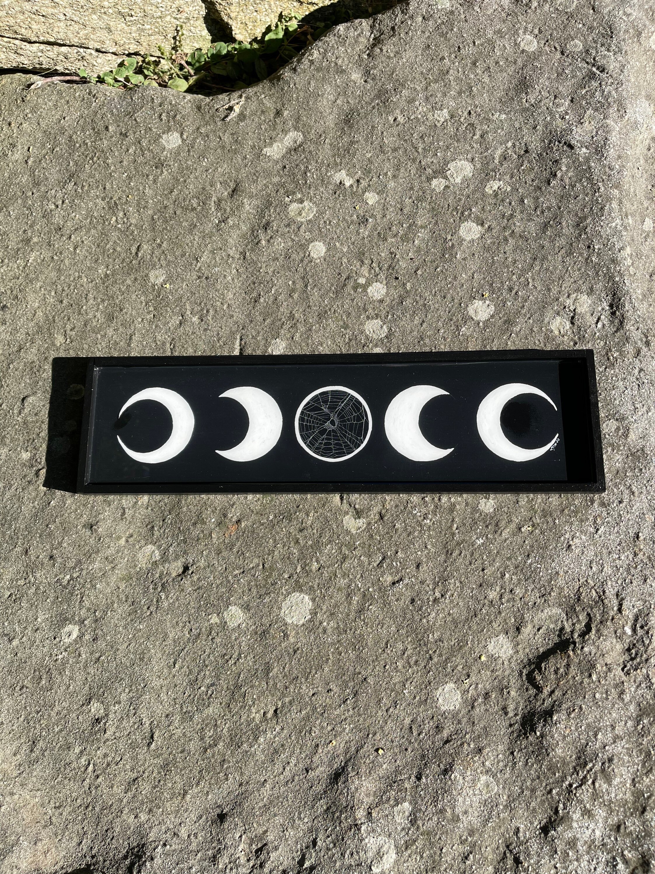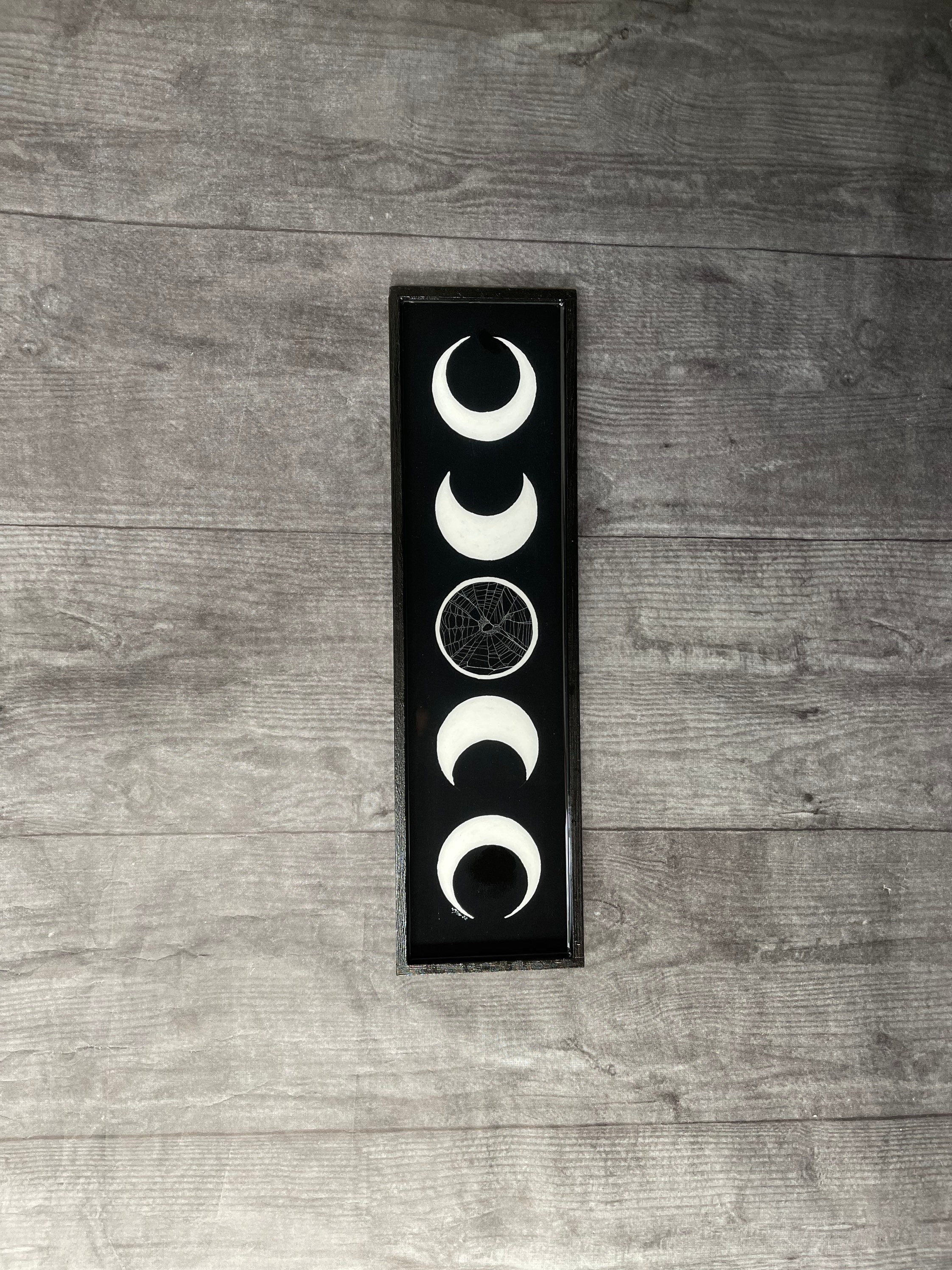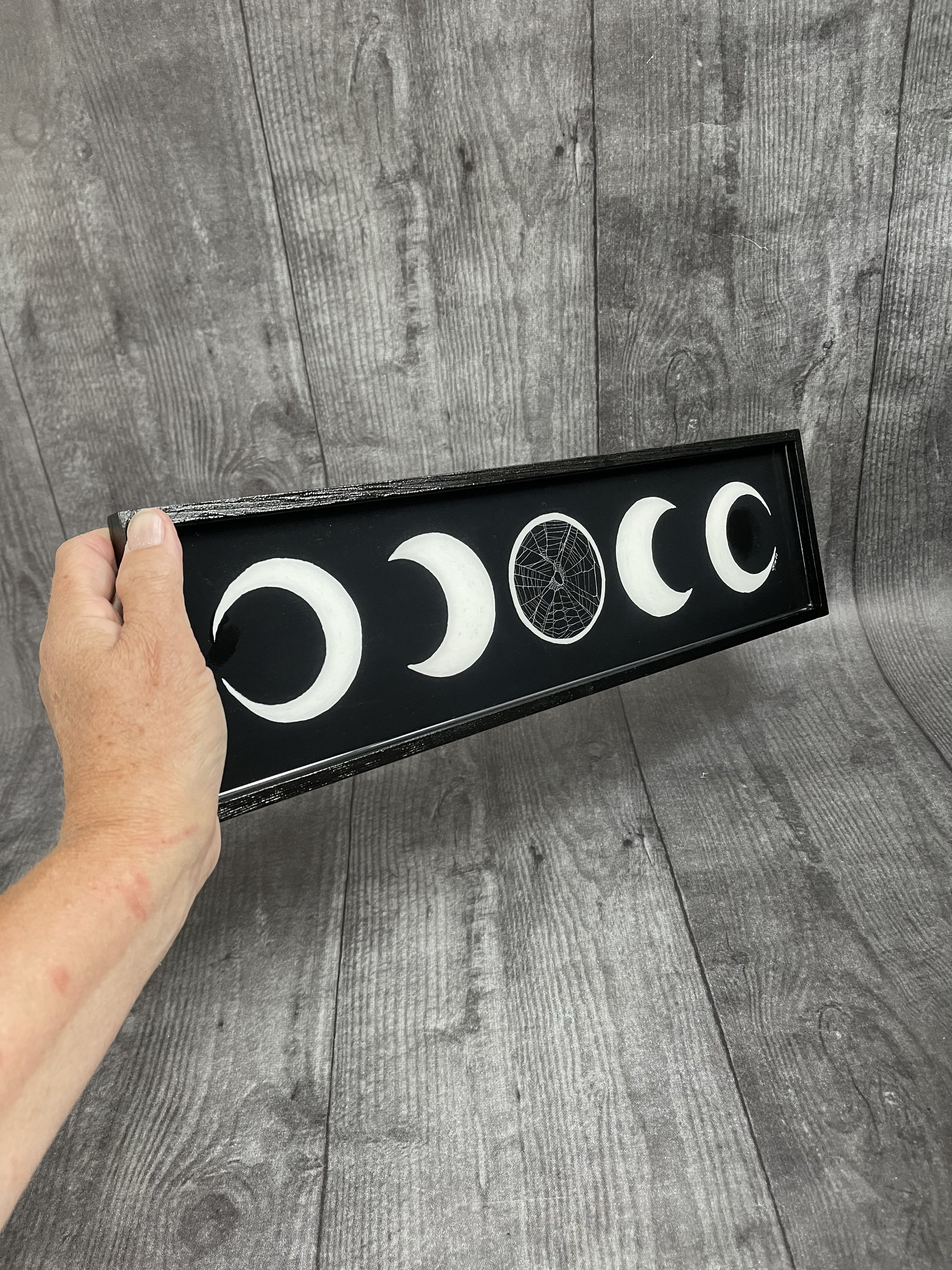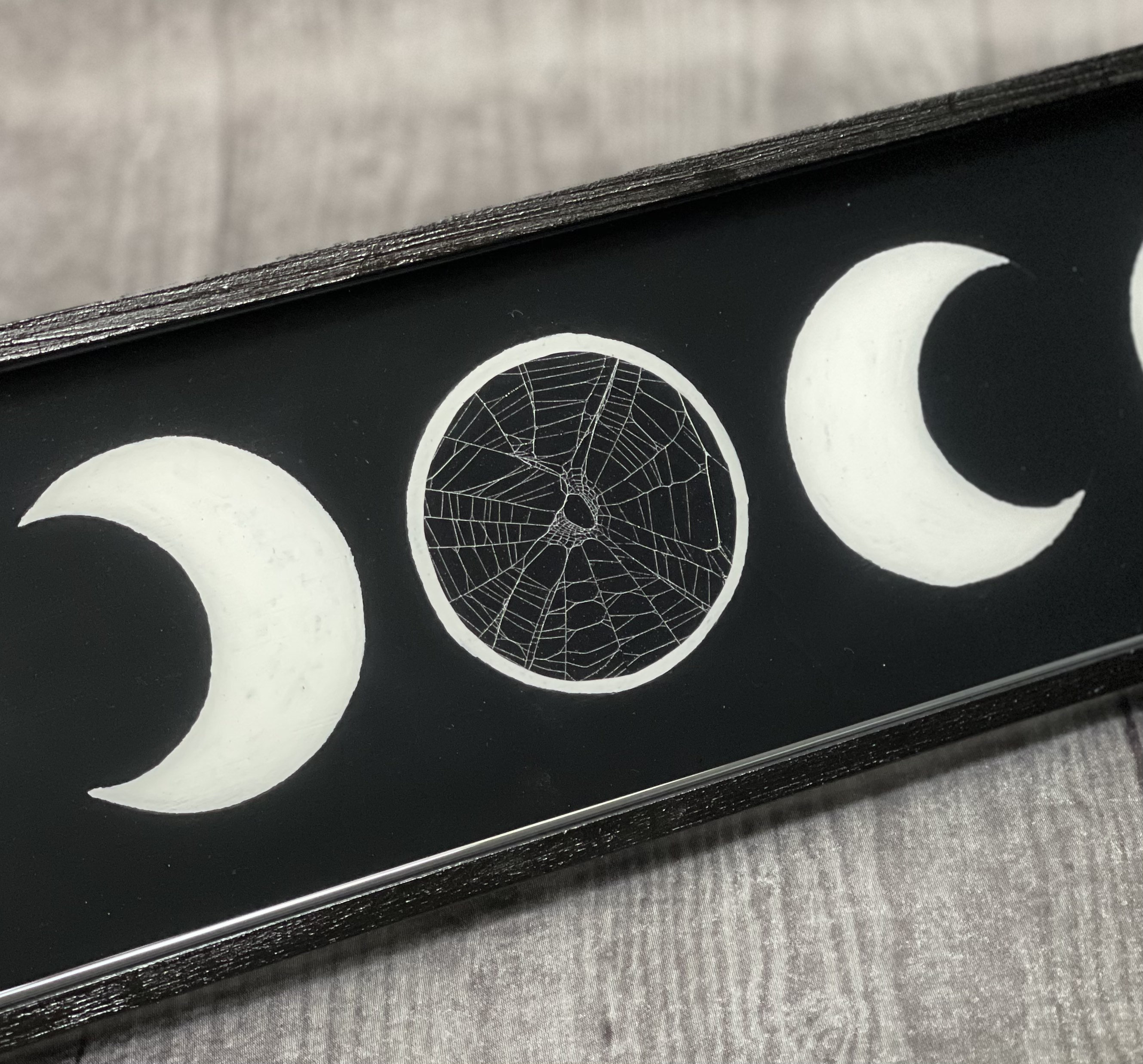 Moon Phases Plaque with Real Preserved Spider Web on the center moon.