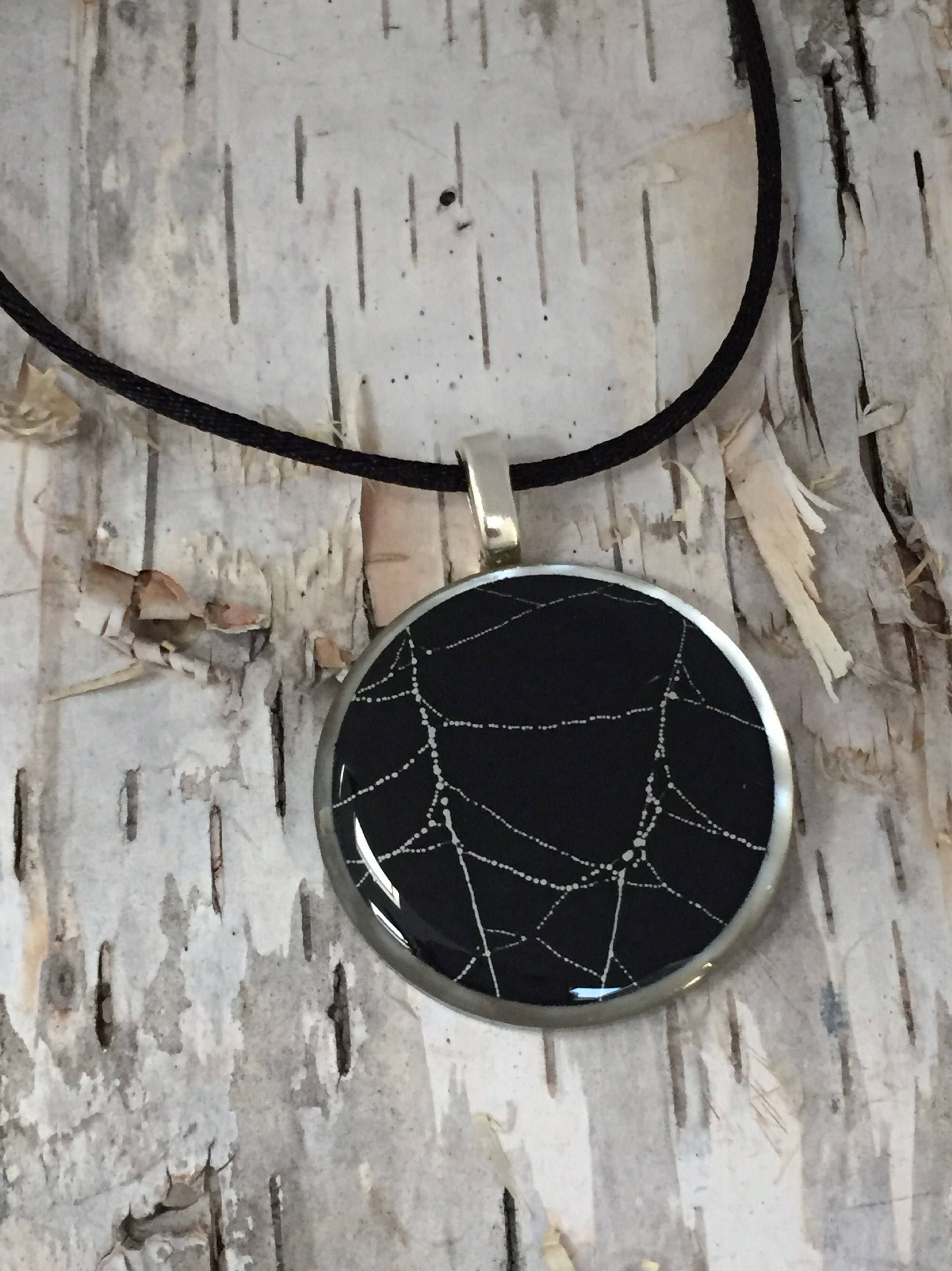 This is a REAL, Preserved spider web in resin on black paper. The web is sealed onto a vintage faux pearl button measuring 1 3/8" around. This is truly a one of a kind piece.