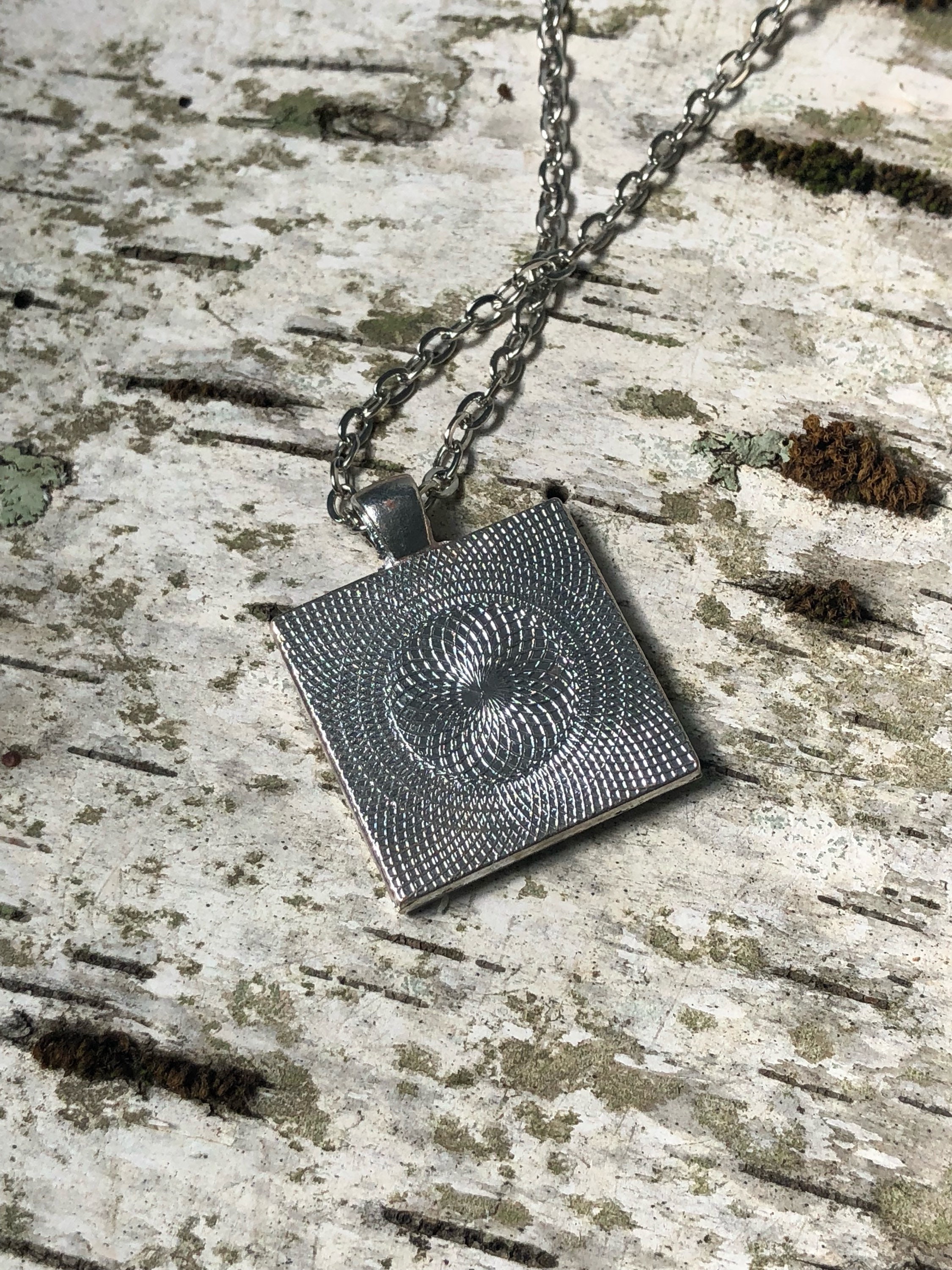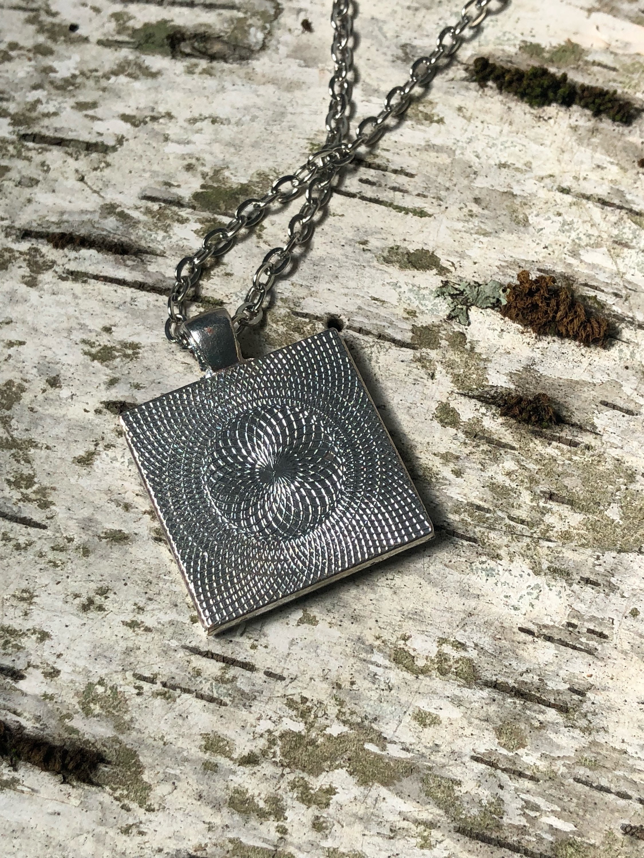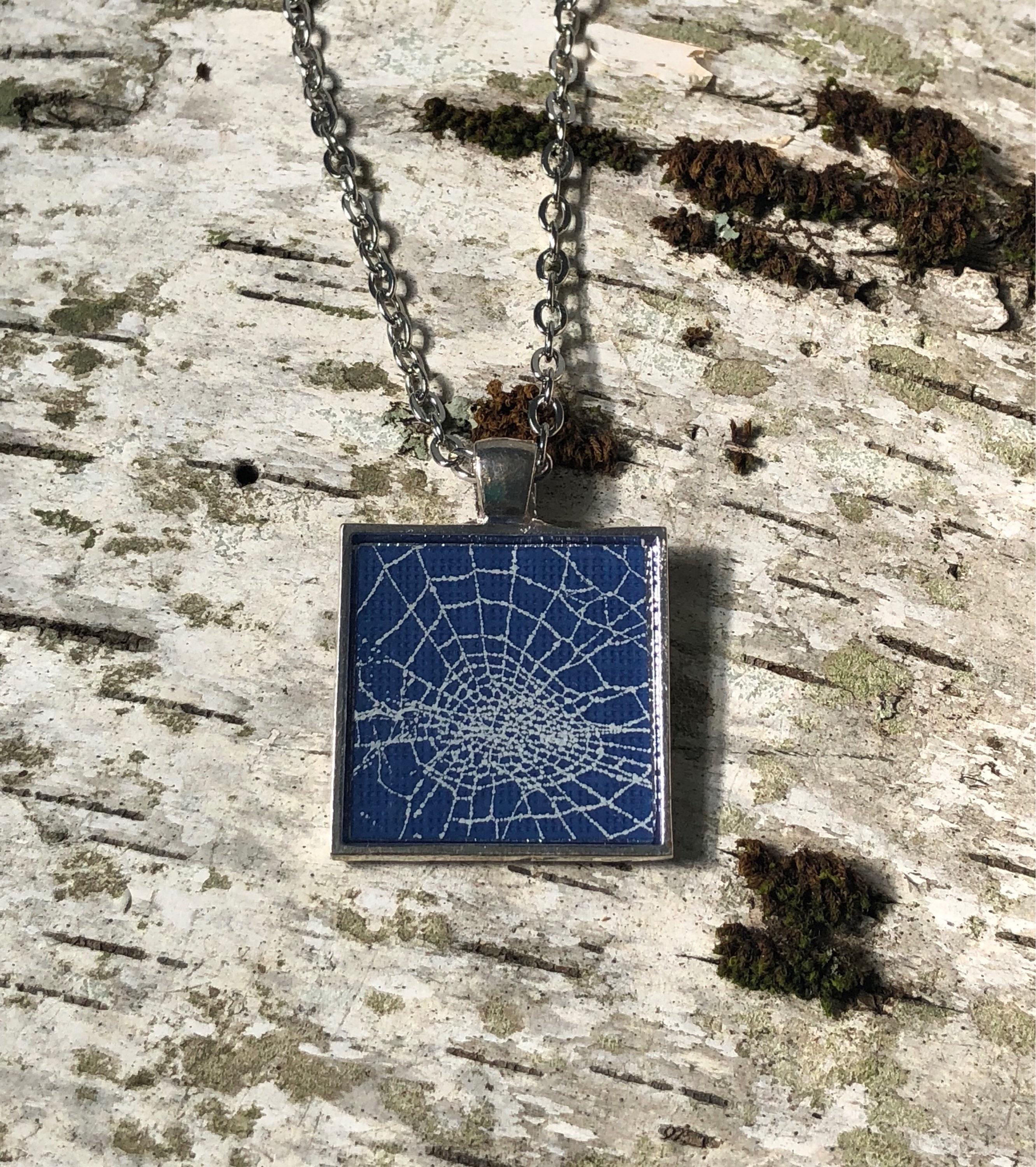 This is a one inch silver plated, square bezel. This is a REAL, Preserved spider web in resin on blue paper.