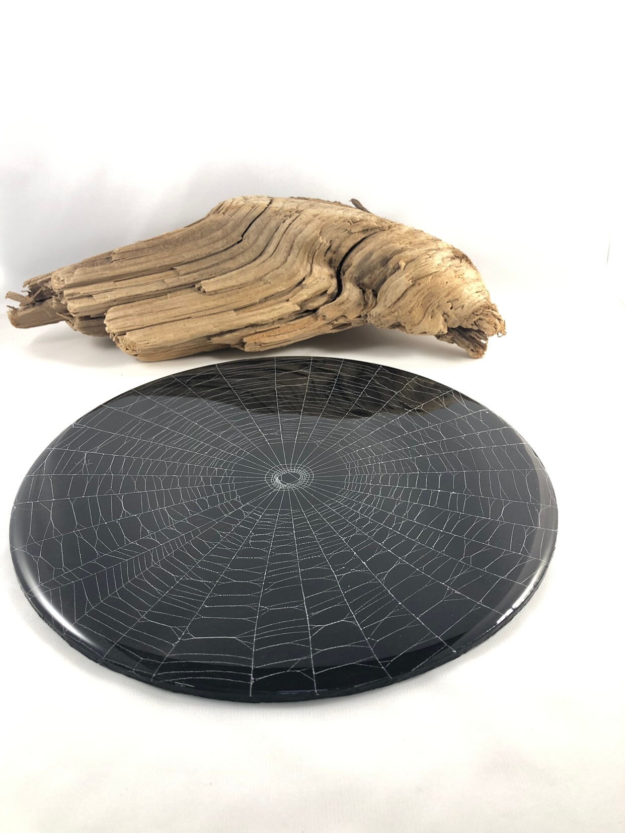 This is a Genuine Preserved Spider Web on a 8 inch wooden disc.