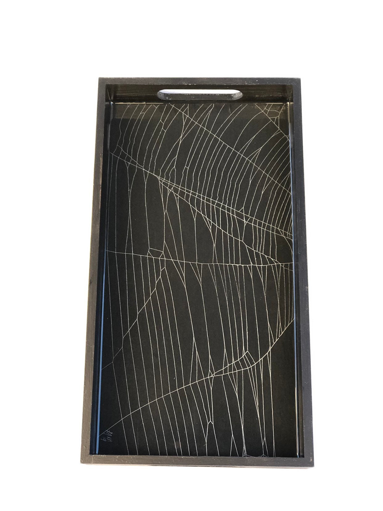 The web has been Preserved on black paper then set in and sealed with an environmentally friendly resin.