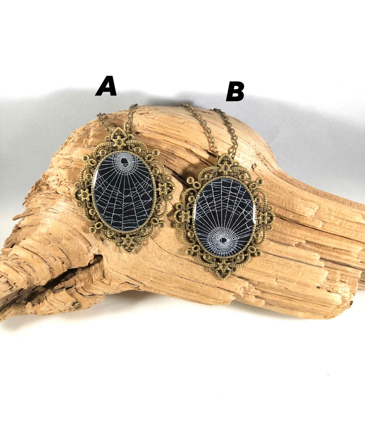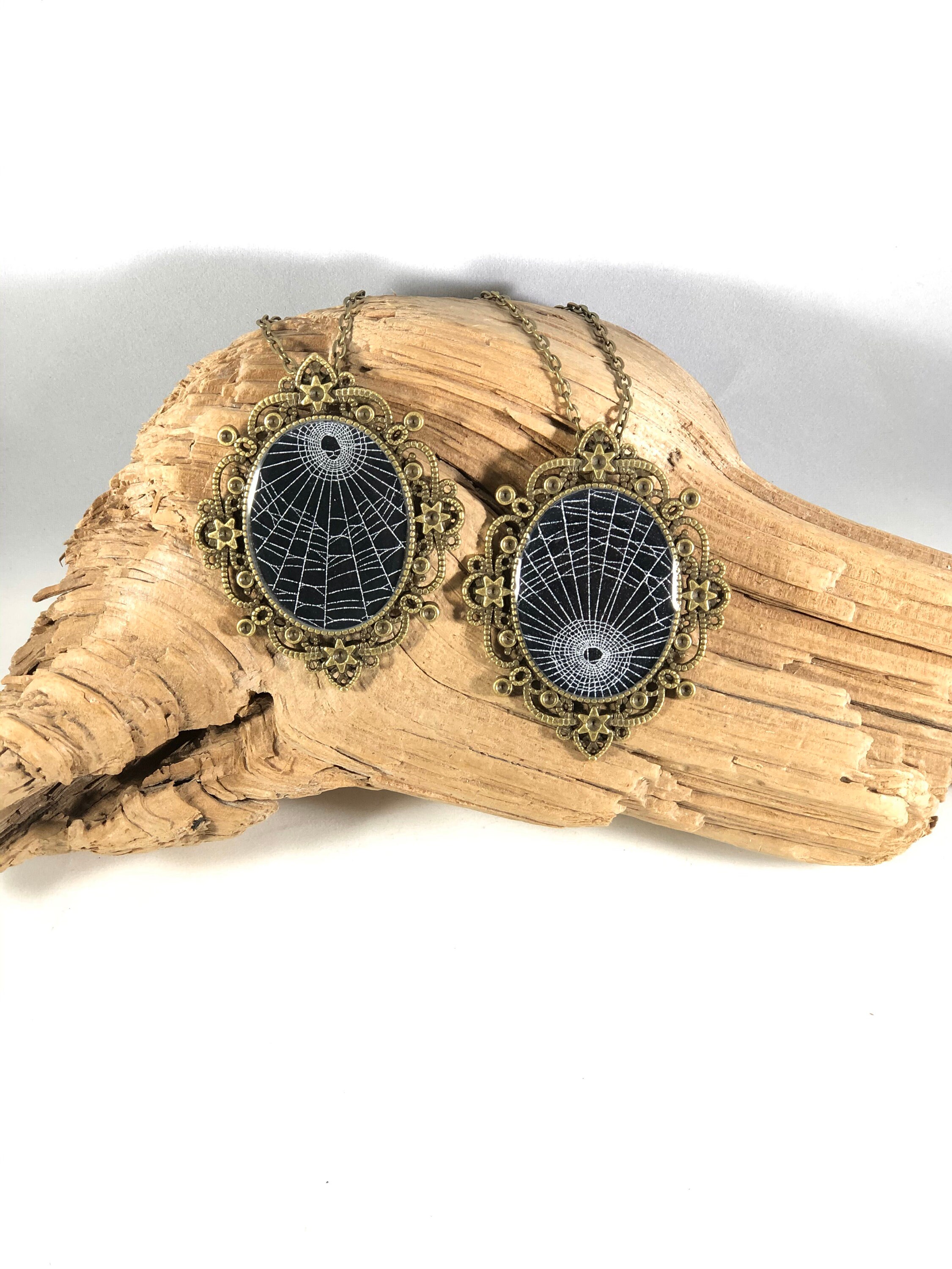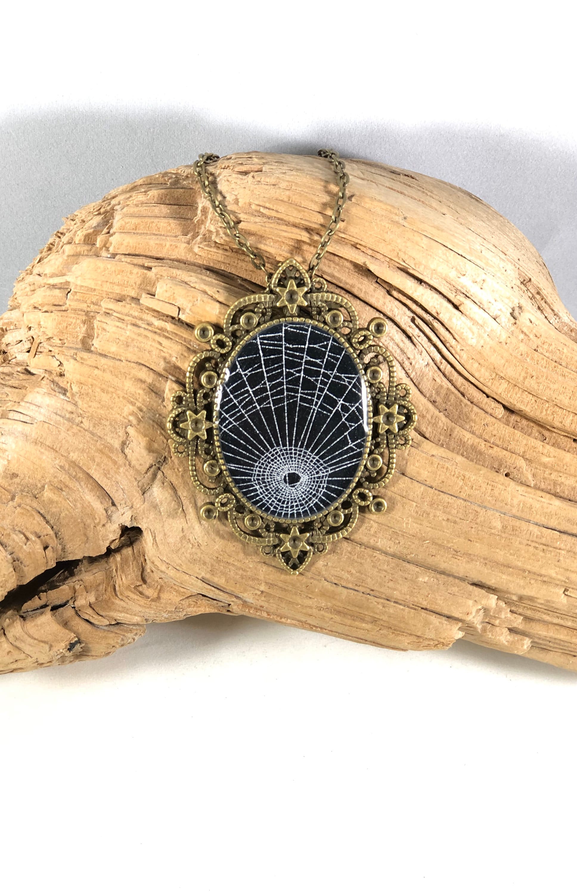 This is a Genuine Preserved spider web, preserved on black paper. The web is then sealed in jewelry grade resin on a Beautiful Victorian antique bronze 30mm X 40mm long oval pendants. Made from a strong metal alloy.
