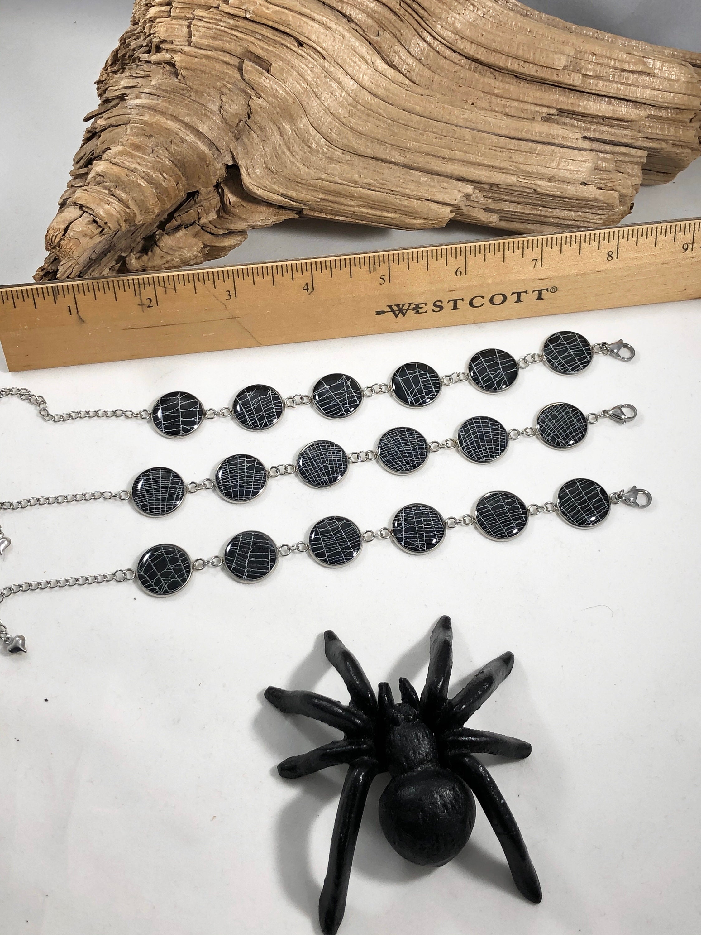 This is a REAL Spider web preserved on Black paper, sealed in a jewelry grade resin. The webs are sealed in a 16mm round stainless steel pieces.