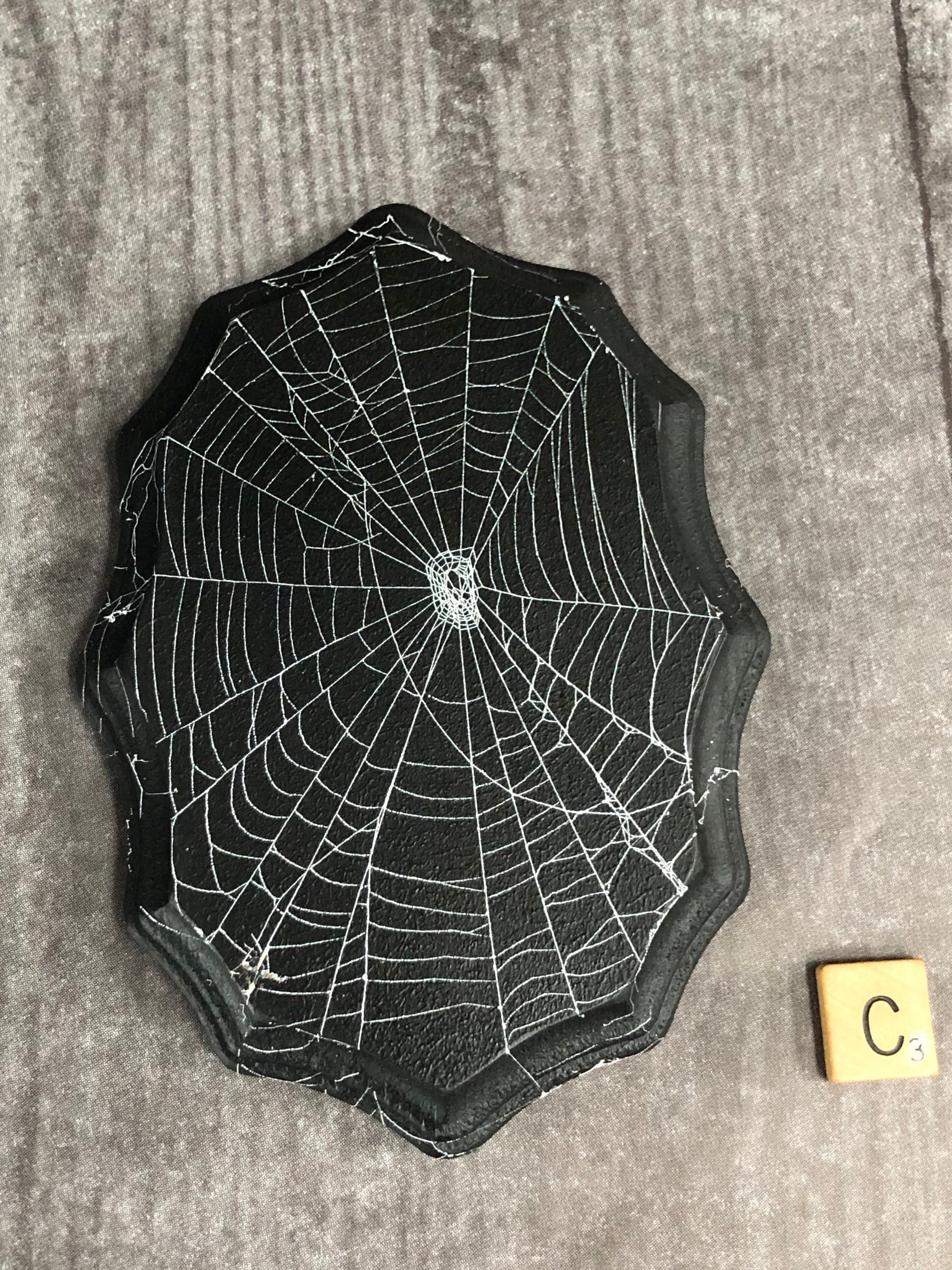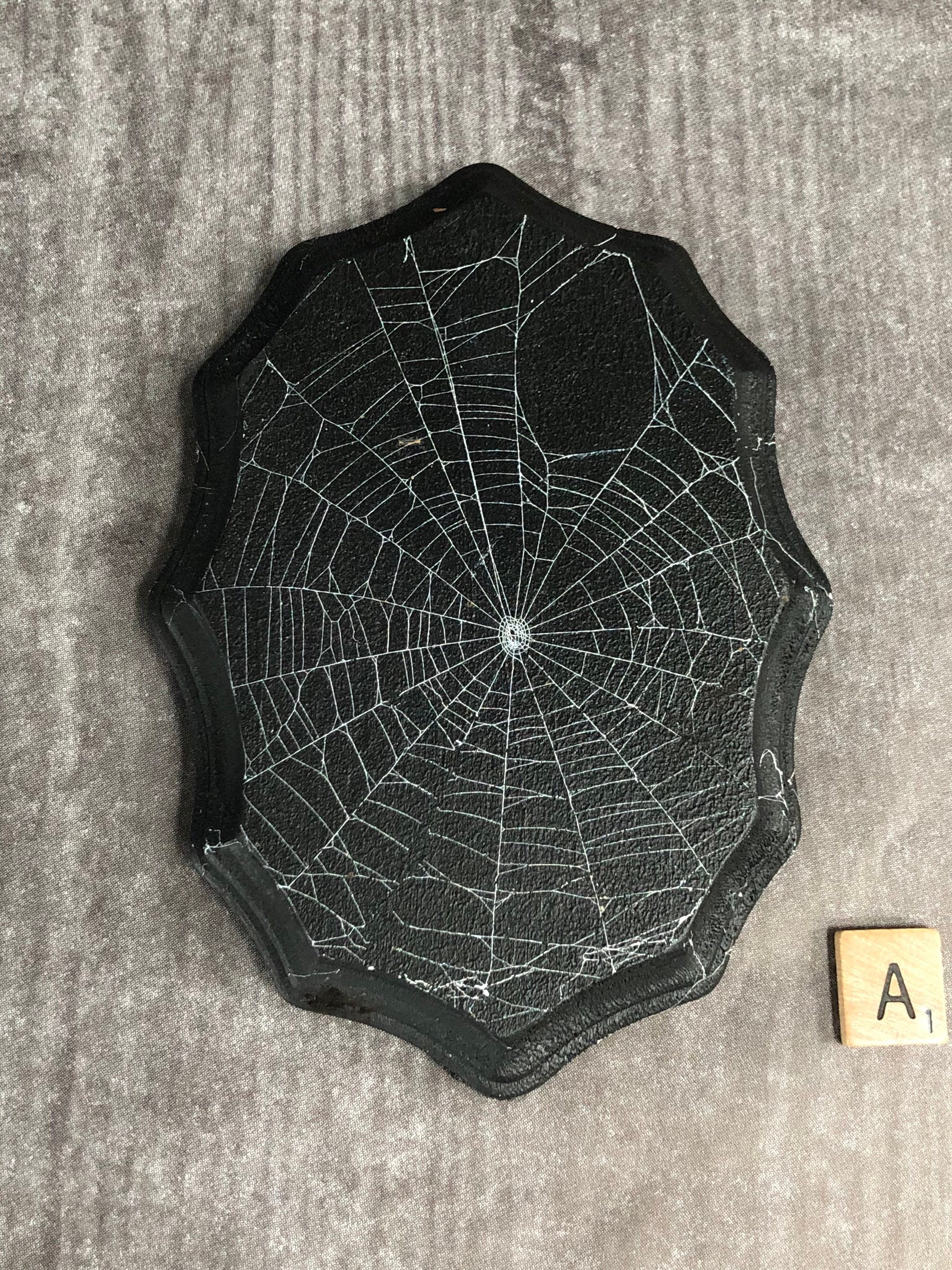These are Real Spider Webs Preserved and sealed onto painted black wooden plaques. (SPIDER NOT INCLUDED)